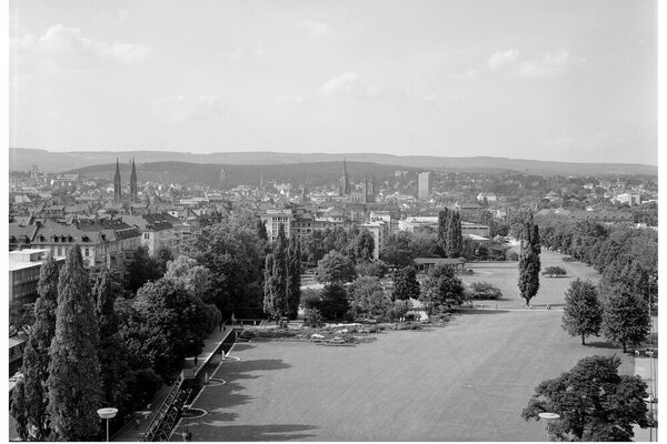 The Reisinger grounds opposite the main railway station (opens in a new tab) owe their existence to the generous donations of the merchant Hugo Reisinger (opens in a new tab) and the pharmacist Adam Herbert (opens in a new tab). A gas factory as well as the Taunusbahnhof, Rheinbahnhof and Hessische Ludwigsbahnhof were located on the site or in the immediate vicinity.