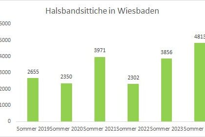 Wie viele Sittiche gibt es in Wiesbaden und nimmt ihre Zahl noch zu?